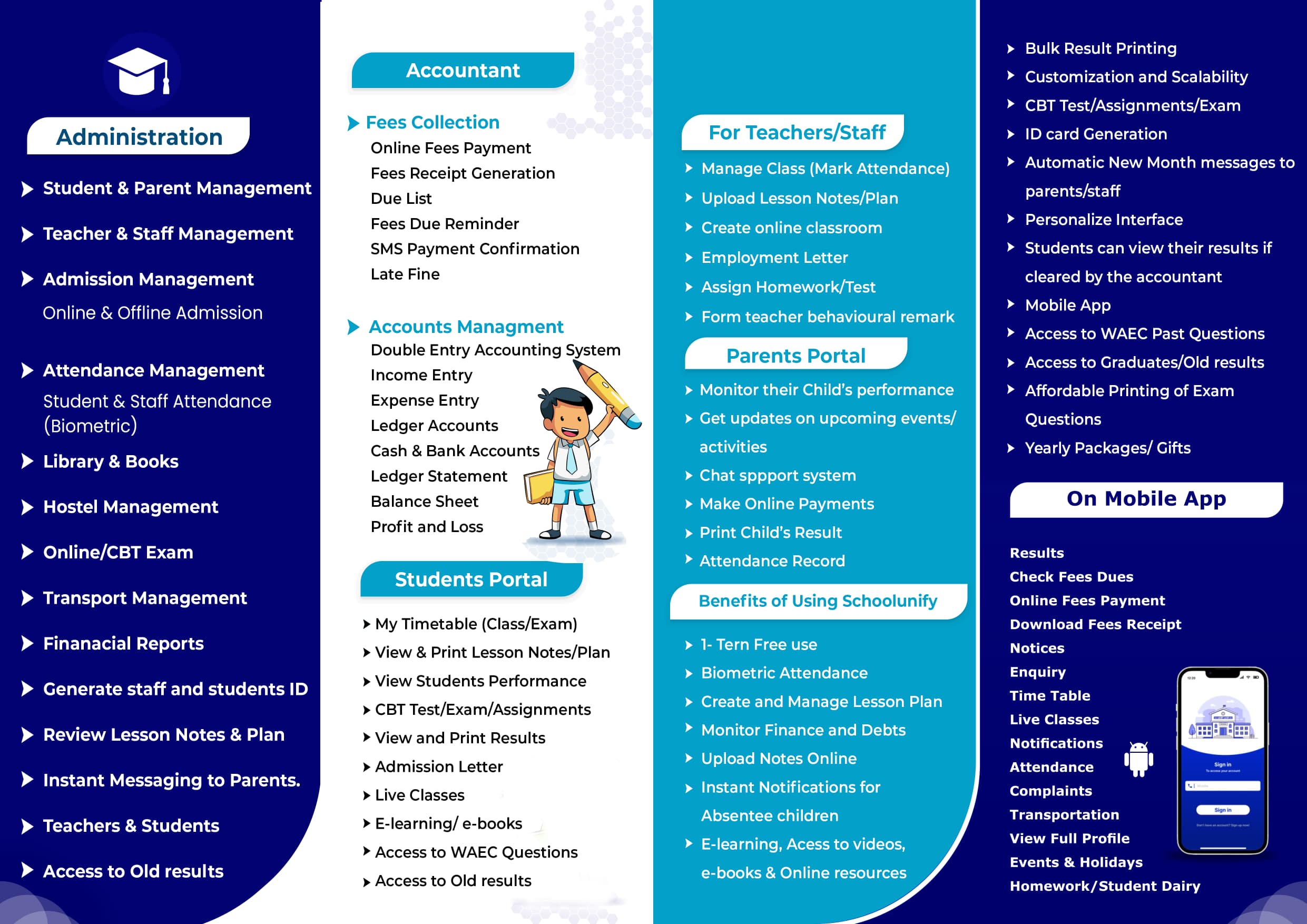 Our school management software is designed to streamline administrative tasks, improve communication between teachers, parents, and students, and provide a comprehensive platform for managing student data.